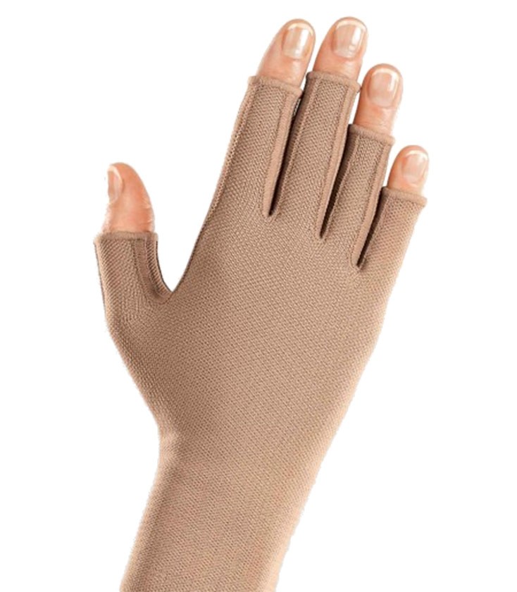 Luva de compressão Medi impede em caso de edemas, que o líquido linfático fique congestionado nas mãos e estimulam o refluxo do tecido. Utilizada para doenças linfáticas, mas também para terapia de cicatrizes, exclusivamente malha plana. Podem ser fabricadas individualmente e adaptadas a todas as formas da mão. As luvas de compressão protegem simultaneamente a pele sensível.
