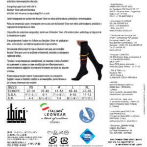Meias de compressão pelo joelho, com efeito energizante e bacteriostático – 70 (11/14 mmHg). É uma meia energética com Supplex – um fio semelhante ao algodão, e RESISTEX® SILVER – um fio de prata com efeito antimicrobiano na sola da meia. Com calcanhar anatómico, cós alto para maior conforto e efeito.